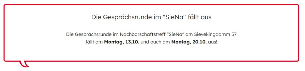 Auch hier sollten Ankündigungen angezeigt werden, die für alle Gesprächsrundentermine gelten. Z.B. „Während der Weihnachtsferien findet keine Gesprächsrunden statt”. Dadurch muss man nicht für alle Termine eine Ausnahme erstellen. - Auf der Kontakt-Seite